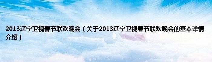 本文关于2013辽宁卫视春节联欢晚会的基本详情介绍就讲解完毕,希望对大家有所帮助。