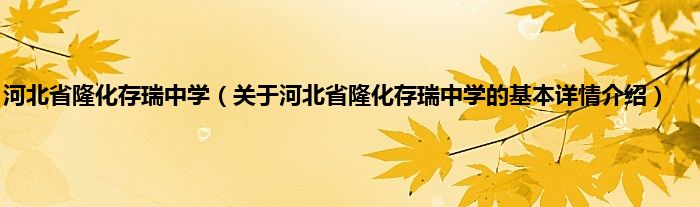 本文关于河北省隆化存瑞中学的基本详情介绍就讲解完毕,希望对大家有所帮助。