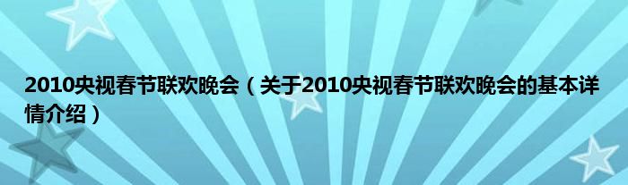 本文关于2010央视春节联欢晚会的基本详情介绍就讲解完毕,希望对大家有所帮助。