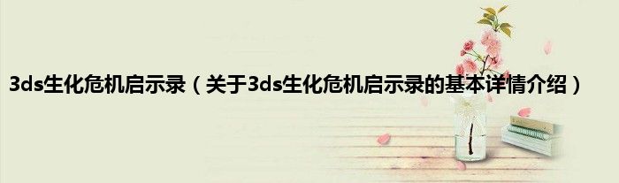本文关于3ds生化危机启示录的基本详情介绍就讲解完毕,希望对大家有所帮助。