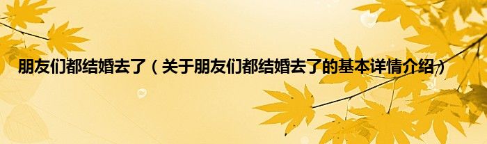 本文关于朋友们都结婚去了的基本详情介绍就讲解完毕,希望对大家有所帮助。