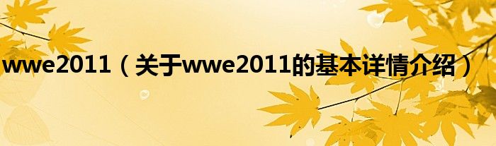 本文关于wwe2011的基本详情介绍就讲解完毕,希望对大家有所帮助。