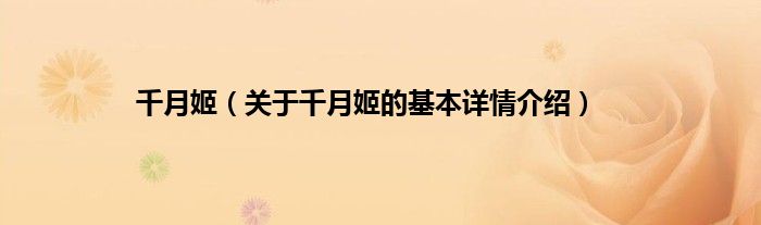本文关于千月姬的基本详情介绍就讲解完毕,希望对大家有所帮助。