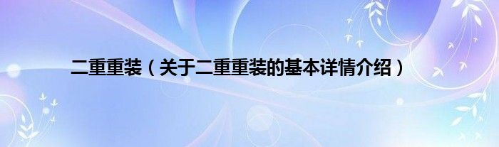 大家好我是小蝌蚪,二重重装,关于二重重装的基本详情介绍很多人还不知道,那么现在让我们一起来看看吧!