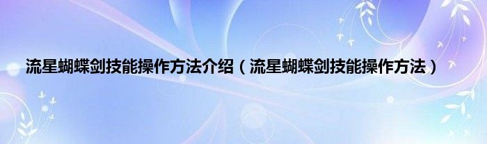以上就是【流星蝴蝶剑技能操作方法介绍,流星蝴蝶剑技能操作方法】相关内容。