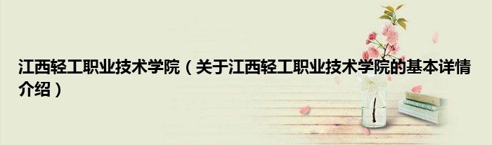 本文关于江西轻工职业技术学院的基本详情介绍就讲解完毕,希望对大家有所帮助。