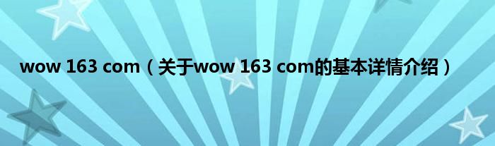 本文关于wow 163 com的基本详情介绍就讲解完毕,希望对大家有所帮助。