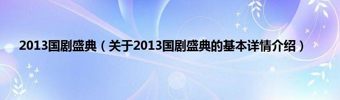 本文关于2013国剧盛典的基本详情介绍就讲解完毕,希望对大家有所帮助。