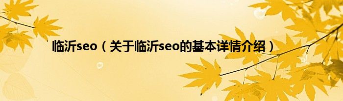 本文关于临沂seo的基本详情介绍就讲解完毕,希望对大家有所帮助。