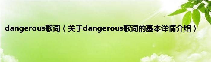 本文关于dangerous歌词的基本详情介绍就讲解完毕,希望对大家有所帮助。