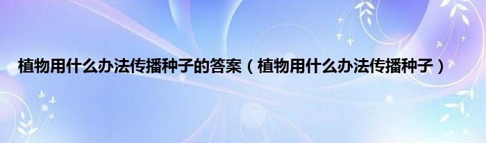 以上就是【植物用什么办法传播种子的答案,植物用什么办法传播种子】相关内容。