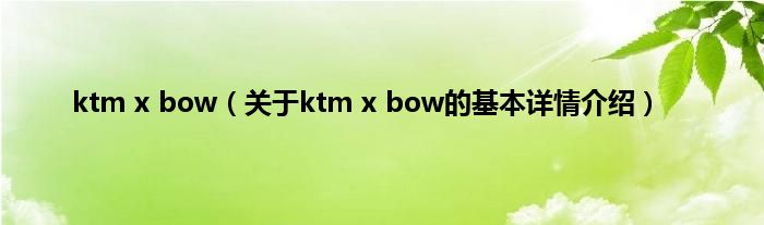 本文关于ktm x bow的基本详情介绍就讲解完毕,希望对大家有所帮助。