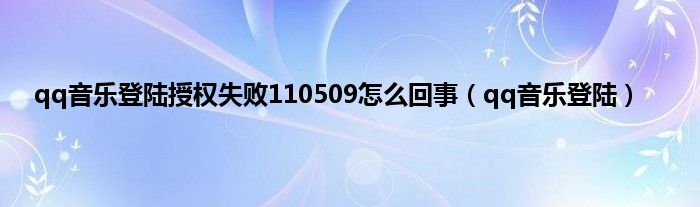 以上就是【qq音乐登陆授权失败110509怎么回事,qq音乐登陆】相关内容。