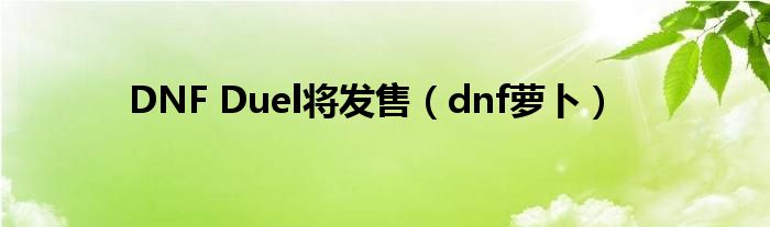 以上就是【DNF Duel将发售,dnf萝卜】相关内容。