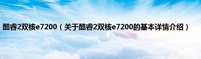 本文关于酷睿2双核e7200的基本详情介绍就讲解完毕,希望对大家有所帮助。
