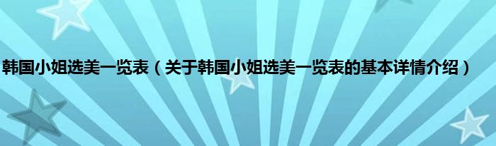 本文关于韩国小姐选美一览表的基本详情介绍就讲解完毕,希望对大家有所帮助。