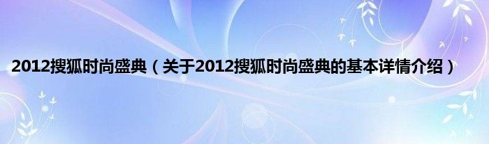 2012搜狐时尚盛典(关于2012搜狐时尚盛典的基本详情介绍)