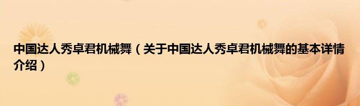 本文关于中国达人秀卓君机械舞的基本详情介绍就讲解完毕,希望对大家有所帮助。