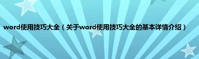 word使用技巧大全(关于word使用技巧大全的基本详情介绍)