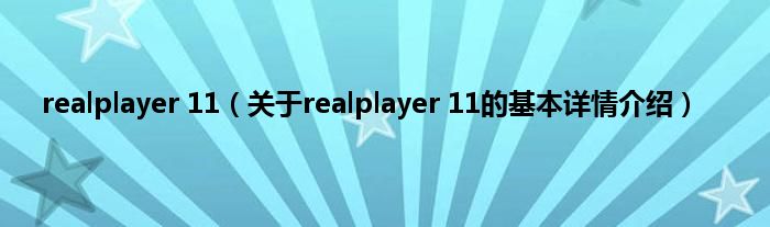 realplayer 11(关于realplayer 11的基本详情介绍)