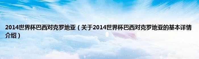 本文关于2014世界杯巴西对克罗地亚的基本详情介绍就讲解完毕,希望对大家有所帮助。