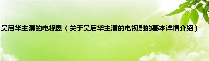 本文关于吴启华主演的电视剧的基本详情介绍就讲解完毕,希望对大家有所帮助。