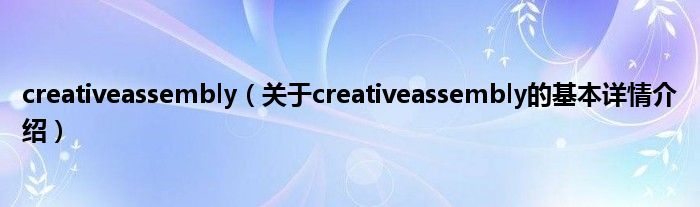 本文关于creativeassembly的基本详情介绍就讲解完毕,希望对大家有所帮助。
