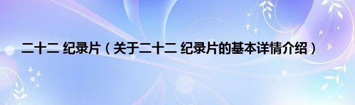 本文关于二十二 纪录片的基本详情介绍就讲解完毕,希望对大家有所帮助。