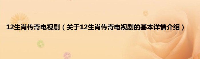 本文关于12生肖传奇电视剧的基本详情介绍就讲解完毕,希望对大家有所帮助。