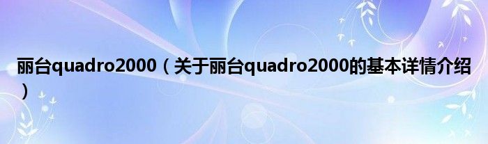 本文关于丽台quadro2000的基本详情介绍就讲解完毕,希望对大家有所帮助。