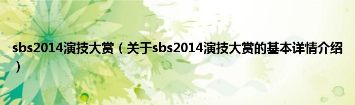 本文关于sbs2014演技大赏的基本详情介绍就讲解完毕,希望对大家有所帮助。