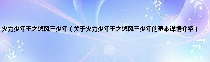 本文关于火力少年王之悠风三少年的基本详情介绍就讲解完毕,希望对大家有所帮助。