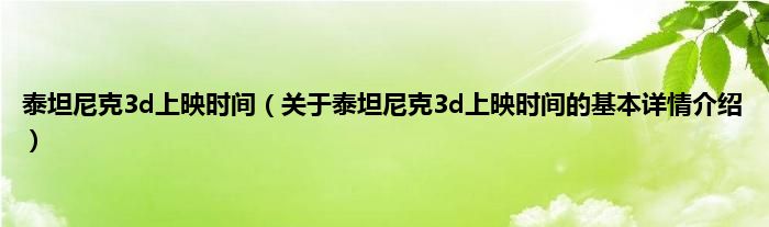 本文关于泰坦尼克3d上映时间的基本详情介绍就讲解完毕,希望对大家有所帮助。