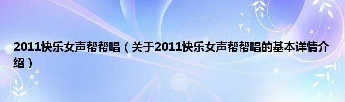 本文关于2011快乐女声帮帮唱的基本详情介绍就讲解完毕,希望对大家有所帮助。