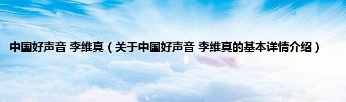 本文关于中国好声音 李维真的基本详情介绍就讲解完毕,希望对大家有所帮助。