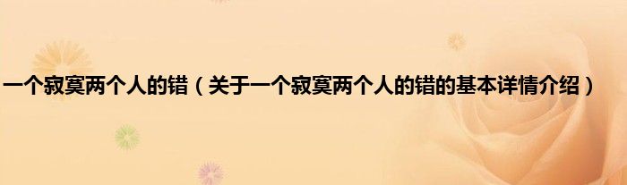 一个寂寞两个人的错(关于一个寂寞两个人的错的基本详情介绍)
