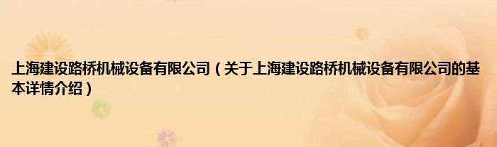 本文关于上海建设路桥机械设备有限公司的基本详情介绍就讲解完毕,希望对大家有所帮助。