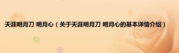 本文关于天涯明月刀 明月心的基本详情介绍就讲解完毕,希望对大家有所帮助。
