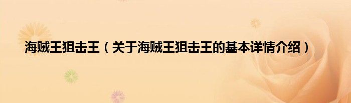 本文关于海贼王狙击王的基本详情介绍就讲解完毕,希望对大家有所帮助。