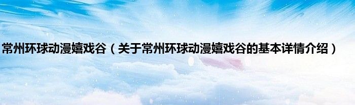 本文关于常州环球动漫嬉戏谷的基本详情介绍就讲解完毕,希望对大家有所帮助。