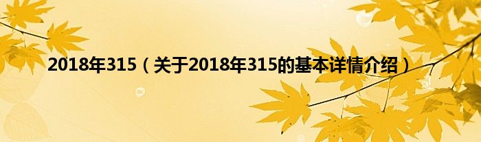 本文关于2018年315的基本详情介绍就讲解完毕,希望对大家有所帮助。