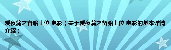 本文关于爱夜蒲之备胎上位 电影的基本详情介绍就讲解完毕,希望对大家有所帮助。