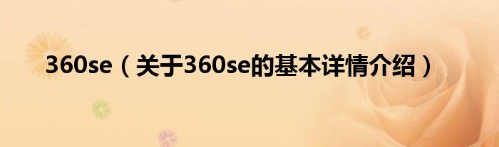 本文关于360se的基本详情介绍就讲解完毕,希望对大家有所帮助。