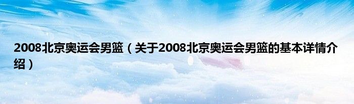 本文关于2008北京奥运会男篮的基本详情介绍就讲解完毕,希望对大家有所帮助。