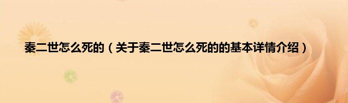 本文关于秦二世怎么死的的基本详情介绍就讲解完毕,希望对大家有所帮助。