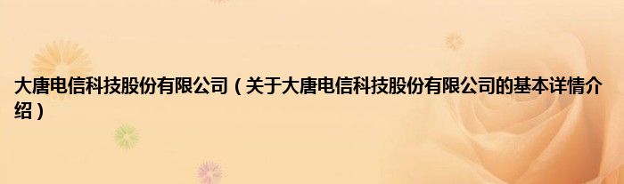 本文关于大唐电信科技股份有限公司的基本详情介绍就讲解完毕,希望对大家有所帮助。