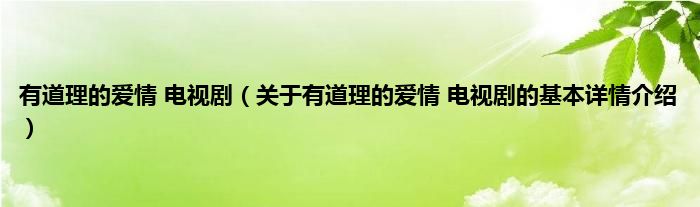 本文关于有道理的爱情 电视剧的基本详情介绍就讲解完毕,希望对大家有所帮助。