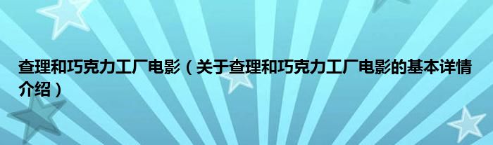本文关于查理和巧克力工厂电影的基本详情介绍就讲解完毕,希望对大家有所帮助。