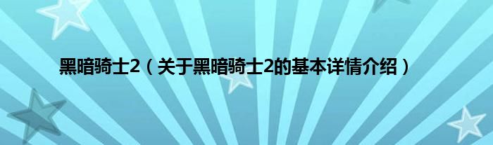 本文关于黑暗骑士2的基本详情介绍就讲解完毕,希望对大家有所帮助。