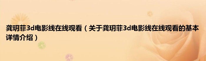 本文关于龚玥菲3d电影线在线观看的基本详情介绍就讲解完毕,希望对大家有所帮助。